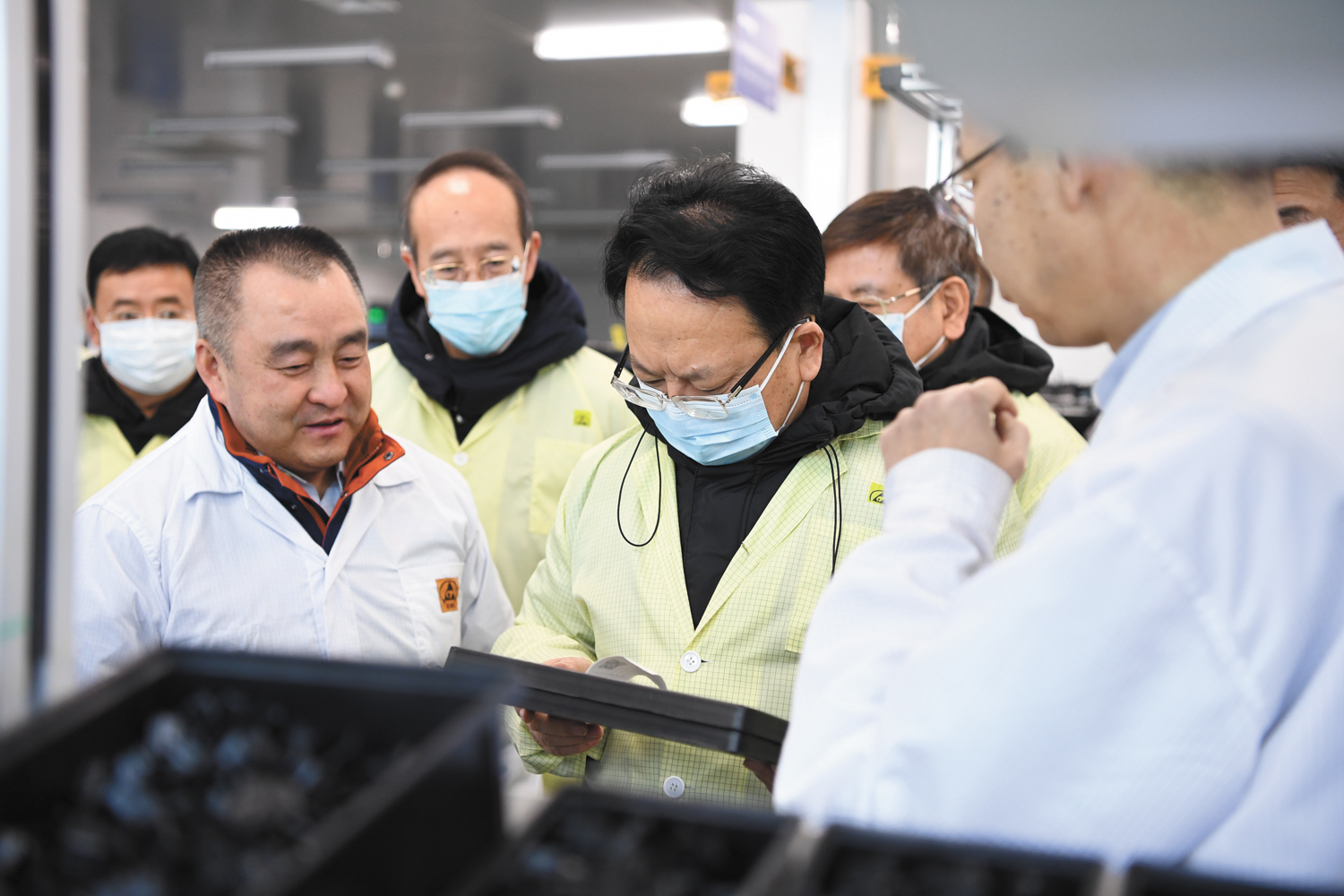 ?。保苍拢谷眨质∥瘯浘翱『5街袊鞴I(yè)集團東北工業(yè)集團有限公司,就深入貫徹黨的十九屆五中全會精神和習近平總書記視察吉林重要講話重要指示精神,全面落實省委十一屆八次全會精神,推動企業(yè)創(chuàng)新發(fā)展等情況進行調(diào)研。吉林省委常委、副省長吳靖平,吉林省委常委、省委秘書長胡家福,吉林省委常委、長春市委書記王凱一同調(diào)研。  圖為景俊海等在東北工業(yè)集團生產(chǎn)現(xiàn)場調(diào)研
