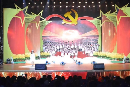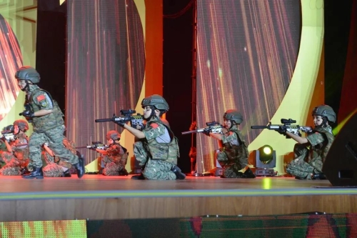 演出共分為三個(gè)篇章:“迎建黨百年、傳兵工精神”“憶長(zhǎng)征歲月、夢(mèng)璀璨中國(guó)”“承紅色基因、展幼教初心”。演出過(guò)程中掌聲不斷,高潮迭起,有合唱,有情景劇,有舞蹈,有快板,全科共361名演出人員,孩子們個(gè)個(gè)落落大方,神采飛揚(yáng),《在燦爛陽(yáng)光下》《燈火里的中國(guó)》《兵工情》,銘記紅色歷史,引導(dǎo)孩子們從小繼承革命傳統(tǒng),傳承兵工精神”。《春天的芭蕾》《我愛(ài)北京天安門(mén)》《水墨丹青繪祖國(guó)》《長(zhǎng)征路上》一首首歌曲鏗鏘有力,一段段回憶激蕩人心,師幼同臺(tái)唱出了對(duì)黨對(duì)祖國(guó)的熱愛(ài)和崇敬之情,讓人們感受到孩子們爭(zhēng)做新時(shí)代紅色接班人的信念、決心?!栋褠?ài)獻(xiàn)給咱的娃》《未來(lái)的保衛(wèi)者》《炫彩青春》引導(dǎo)孩子們從小繼承革命傳統(tǒng),傳承紅色基因,讓紅色教育點(diǎn)亮童年,讓紅色精神代代相傳?!皞鞒屑t色基因,紅色精神代代相傳?!?/p>