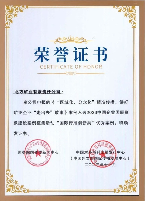 2023中國企業(yè)國際形象建設(shè)案例征集活動由中國外文局國際傳播發(fā)展中心聯(lián)合國務(wù)院國資委新聞中心、人民日報國際部、中國外文局文化傳播中心共同發(fā)起。經(jīng)廣泛征集和多輪評審,從企業(yè)報送的251個有效案例中遴選出“共建新絲路”“跨文化融合”“國際傳播創(chuàng)新”“筑夢人物故事”四類專項優(yōu)秀案例共40個。后續(xù),結(jié)合案例內(nèi)容,將編輯出版《中國企業(yè)國際形象建設(shè)案例集(2023)》并開展多種形式傳播。 來源/北方公司北方礦業(yè) 文/閆寧 |