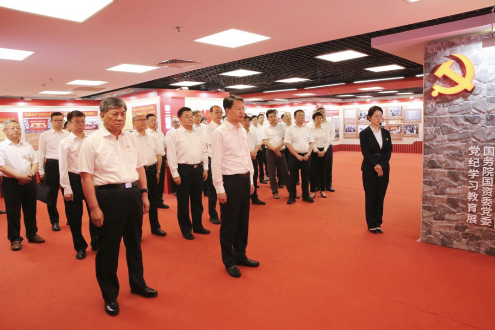 黨組同志認(rèn)真聆聽講解,集體參觀了“政治鑄魂——習(xí)近平總書記重要論述”“紀(jì)法樹威——黨規(guī)黨紀(jì)相關(guān)要求”“傳承增信——黨的優(yōu)良傳統(tǒng)”“嚴(yán)管促行——國務(wù)院國資委黨委紀(jì)律建設(shè)成效”“警示立戒——反面典型案例”“實(shí)干建功——工作展望”6個篇章,通過觀看圖文、視頻等形式多樣的展品展示,進(jìn)一步學(xué)習(xí)領(lǐng)會習(xí)近平總書記關(guān)于國資央企的重要指示批示精神和黨的紀(jì)律建設(shè)的重要論述,學(xué)習(xí)把握《中國共產(chǎn)黨紀(jì)律處分條例》新增、修訂內(nèi)容,全面了解國務(wù)院國資委黨委強(qiáng)化政治引領(lǐng)、加強(qiáng)政治監(jiān)督、深化紀(jì)律建設(shè)、抓實(shí)巡視工作等方面的做法舉措,集中觀看近年來國資央企發(fā)生的具有代表性的違規(guī)違紀(jì)案例,深刻領(lǐng)悟以習(xí)近平同志為核心的黨中央堅(jiān)持黨要管黨、全面從嚴(yán)治黨取得的歷史性成就,全面感受國務(wù)院國資委黨委全面從嚴(yán)治黨取得的重要成果。