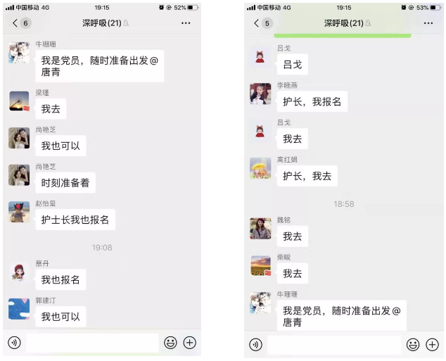 疫情就是命令!接到通知后,醫(yī)院護理部、院感處、醫(yī)務處立即動員部署,面對自愿報名申請,521醫(yī)院的醫(yī)護人員沒有退縮,大家紛紛秒回“我報名”,爭取上前線支援,斬釘截鐵的三個字表明了他們的態(tài)度和決心,8名醫(yī)護人員按時上報西安市衛(wèi)健委,進入陜西省第二批醫(yī)療隊待命,以實際行動為湖北疫情防控做貢獻!