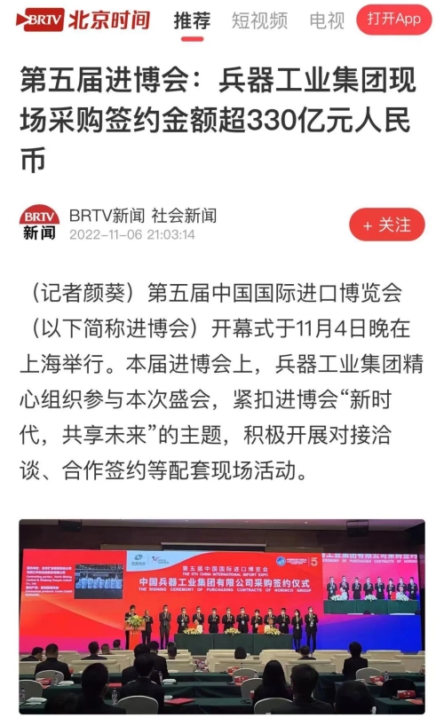 兵器工業(yè)集團(tuán)第五屆進(jìn)博會(huì)成果受到廣泛關(guān)注 |