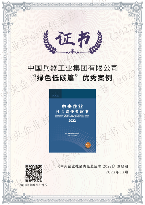兵器工業(yè)集團綠色低碳案例入選《中央企業(yè)社會責(zé)任藍(lán)皮書(2022)》 |