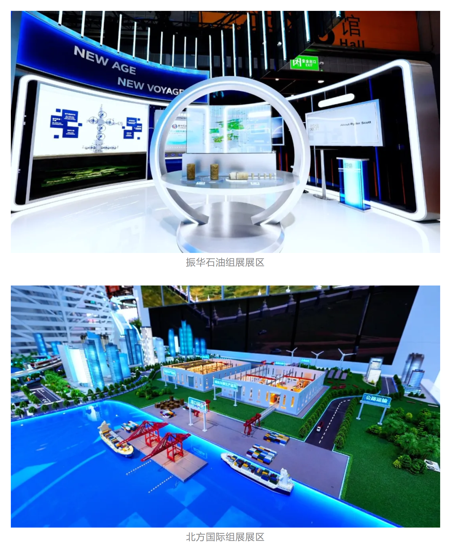 振華石油以“一滴油的故事”串聯(lián)起從勘探開采到貿(mào)易服務(wù)的全產(chǎn)業(yè)鏈,揭示油氣勘探的地球密碼。北方礦業(yè)以《千里江山圖》為靈感,將綠色發(fā)展理念融入礦業(yè)開發(fā),呈現(xiàn)“綠水青山就是金山銀山”的現(xiàn)代礦業(yè)新圖景。北方國際通過創(chuàng)新性的5D穹幕電影、UI互動屏幕、2.5D墻上沙盤等手段,帶領(lǐng)觀眾全景感知電力、礦產(chǎn)、交通等領(lǐng)域一體化建設(shè)的豐碩成果。奧信公司以一體化服務(wù)模型,凸顯全流程自主可控的核心優(yōu)勢。